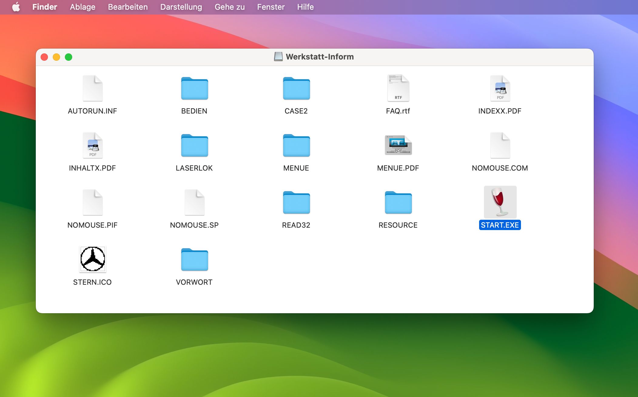 Das ging ja schnell! Rein mit dem WIS, auf die .exe klicken, und wir werden von einem uralten Acrobat Reader begrüßt. Alles wie es soll! Allerdings ist es doch etwas umständlich, immer die CD dabeihaben zu müssen, besonders, wenn der Mac kein CD-Laufwerk hat wie meiner.