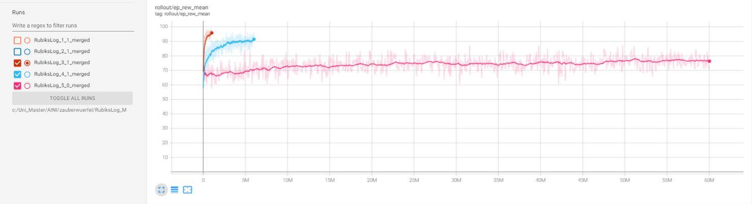 We approached the training gradually, increasing the number of rotations one step at a time. After testing several options, we found that Stable Baselines and PPO (Proximal Policy Optimization) gave us the best results.